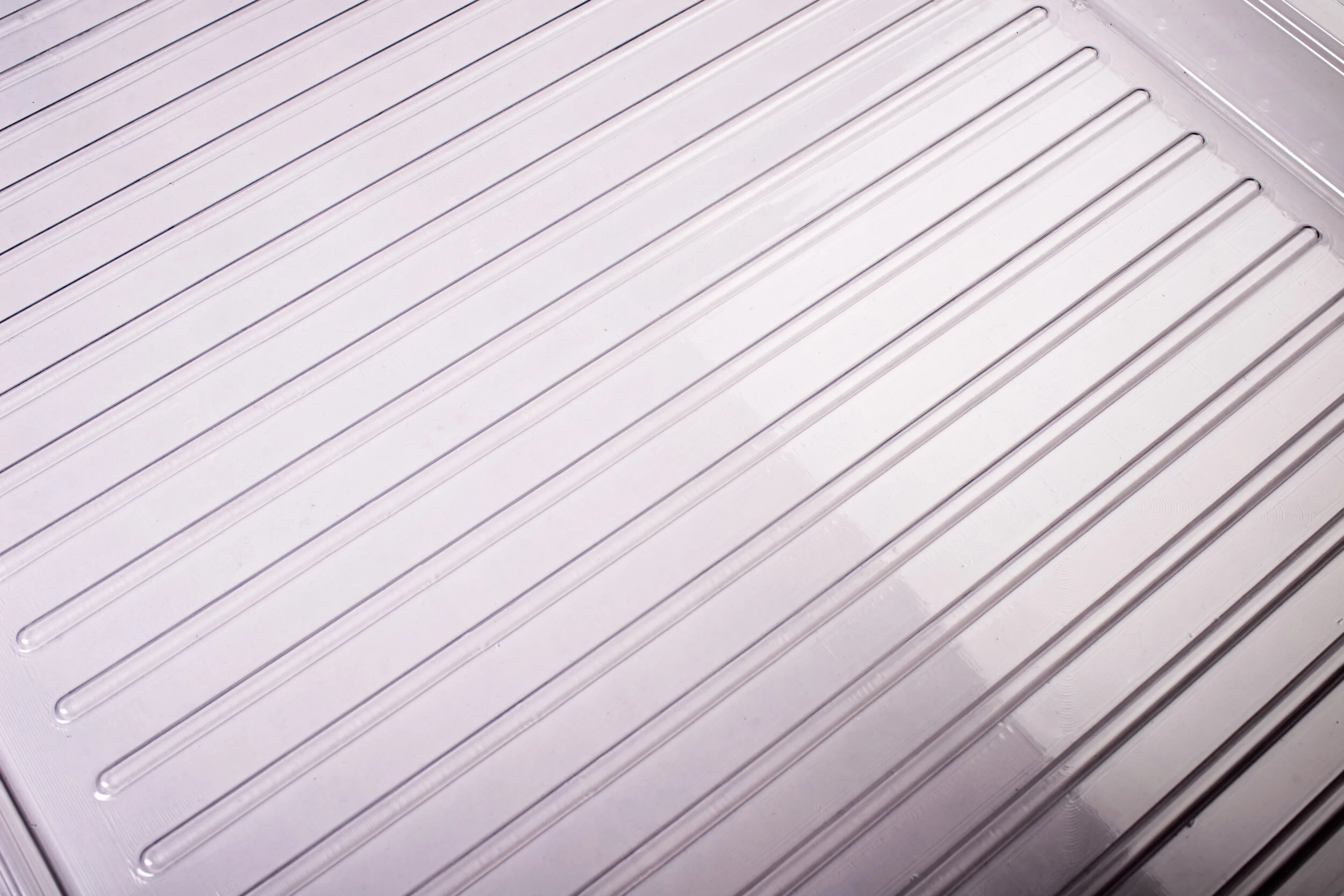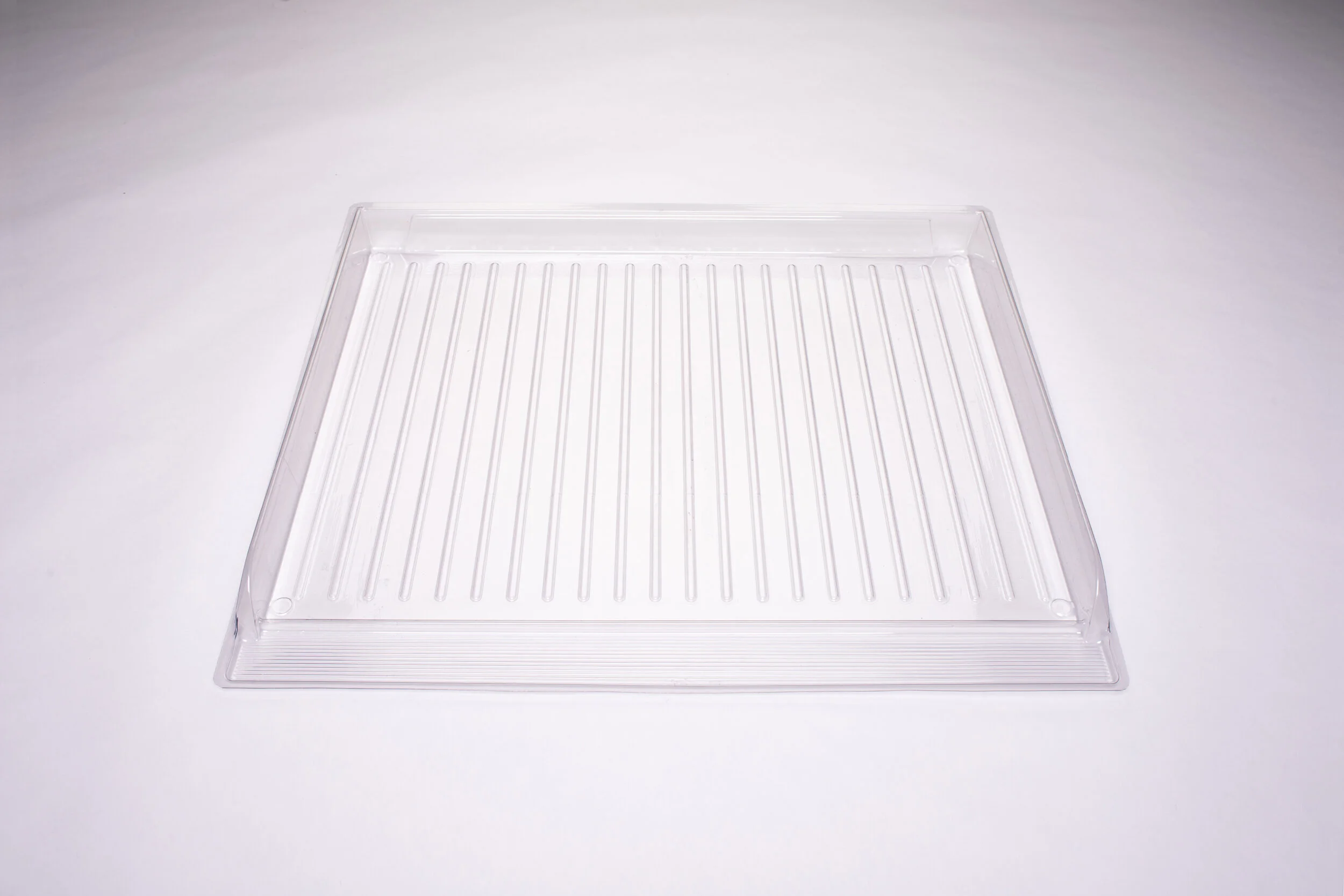 The front edge of Multi-Shield trays overlap the frame joint, preventing leakage from seeping into cabinet interior causing damage, mold and mildew.